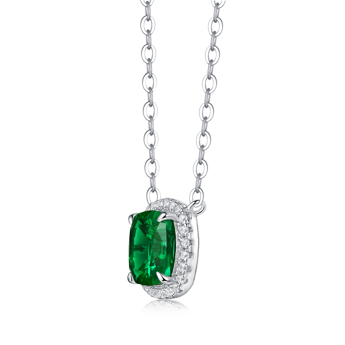 製品名:ラボグロウンカラージェム S925純銀ホワイトゴールドメッキ ネックレス クッションカット 1.5カラット